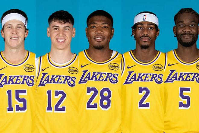 赛前,湖人有两套阵容,一套是打不了阵容。其中东契奇轮休、克勒贝尔四头肌伤势、詹姆斯臀部肌肉伤势、斯玛特跟腱伤势和新秀蒂耶罗膝盖伤势,五人全部缺席。另一套,就是今天的比赛首发阵容了:里夫斯、拉拉维亚、范德比尔特、八村塁、艾顿。