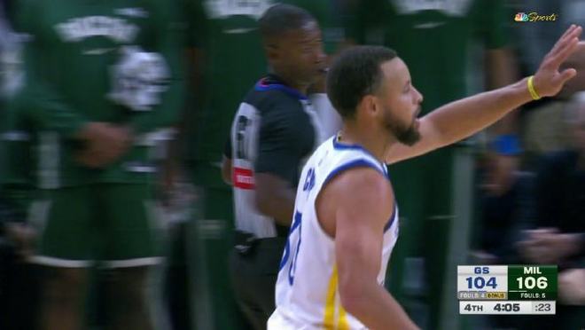 夸张到什么程度?第4节他已经把勇士打得在中圈附近双人夹击了,三个人上来对着他,就这种防守待遇我们只在库里身上见过,现在直接回到了勇士队对手的身上,可是罗林斯就这样也不慌。先是面对霍福德的防守,在2分07秒的时候单挑老霍急停中投轰进,打得像亚历山大。