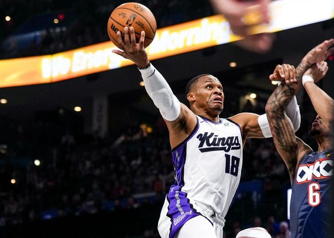 北京时间11月20日,NBA西部分区迎来一场首尾大战,雷霆主场对阵国王。此前雷霆成绩是14胜1负,高居西部第一;而国王战绩3胜11负,排名西部第十四,仅仅好于鹈鹕。两队本赛季已经有过两次交手,虽然国王都输了,但这两场比赛威少场均20分7.5篮板6.5助攻,可以说面对老东家+全联盟最强的球队,威少迸发强大的斗志和能量。在国王的这十几场比赛,威少经历有些励志:起初只是替补,但越打越好去首发打四号位;而最近几场比赛,国王主帅克里斯蒂直接拿下施罗德,让威少来打主控!